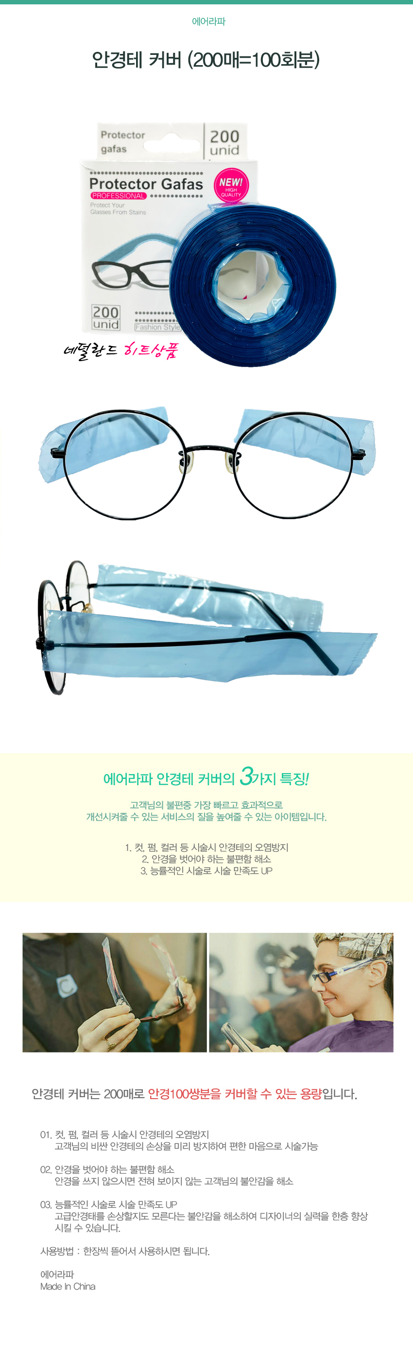 [8198] 에어라파 안경테 커버 200매